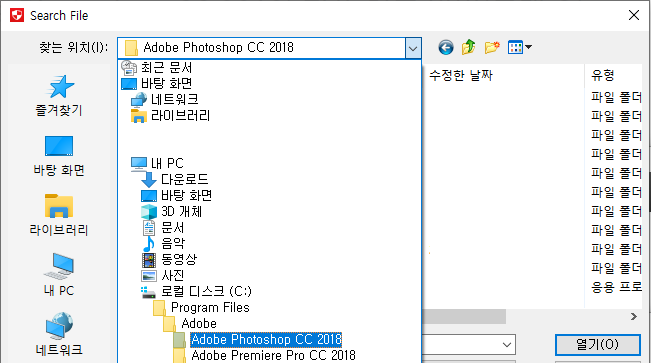 ▶ 로컬디스크 (C:) → Program Files → Adobe → Adobe Photoshop CC 2018