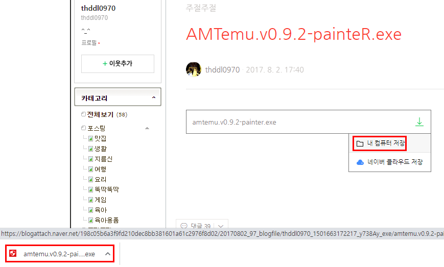 4. 다운로드 완료된 파일 압축풀기, 폴더 클릭하여 입장